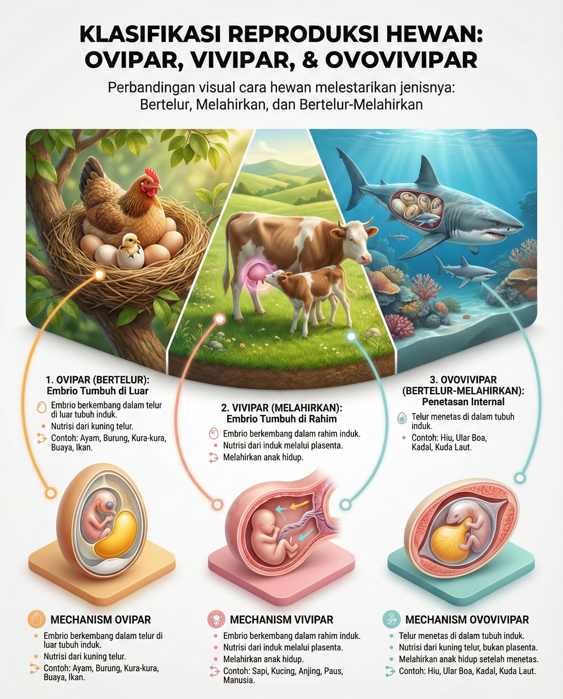 Wah, Bunda! Belajar perkembangbiakan hewan belum pernah segemas ini! Jika poster biasa terkesan kaku, kami menyajikan materi Klasifikasi Hewan (Ovipar, Vivipar, Ovovivipar) dengan gaya ilustrasi rajutan (amigurumi) yang super aesthetic dan ramah anak.